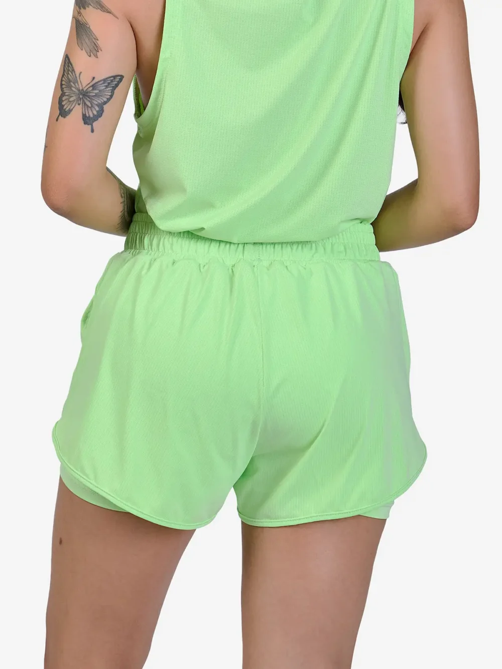 O short interno possui média compressão, proporcionando melhor ajuste ao corpo, sustentação e liberdade de movimento. Já o tecido externo, com 90% poliamida e 10% elastano, é leve e respirável, garantindo ventilação e conforto durante a atividade.